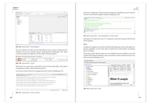 Sie werden Schritt für Schritt in die Programmierung mit C++ und MicroPython eingeführt und lernen die wichtigsten Entwicklungsumgebungen kennen: Arduino-IDE, ESP-IDF, Visual Studio Code und Thonny. Anhand praxisnaher Beispiele setzen Sie digitale Ein- und Ausgänge, PWM, DAC sowie Schnittstellen wie I2C, SPI und Bluetooth ein und realisieren WLAN-Anwendungen mit dem ESP32 als Webserver, Webclient und MQTT-Client.