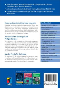 Sie erhalten eine leicht verständliche Einführung in die Automation mit Szenen und Blueprints. Vielseitig einsetzbare Beispiele wie smarte App-Benachrichtigungen, automatisierte Backups oder die Verarbeitung von Wetterdaten dienen als Ausgangspunkt für individuelle Automationen. Technisch versierte Nutzer erfahren, wie sie Skripte von Grund auf selbst erstellen und eigene Smart-Home-Geräte mit ESPHome einbinden.
