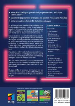 Künstliche Intelligenz kann Aufgaben lösen, die man früher nur Menschen zugetraut hat: einen Hund von einer Katze unterscheiden, die Ampelschaltung einer Kreuzung optimieren und vieles mehr. In diesem Buch lernst du, wie du solche KI-Anwendungen selbst entwickelst – ganz einfach mit Scratch, Python und der kostenlosen Software PictoBlox.