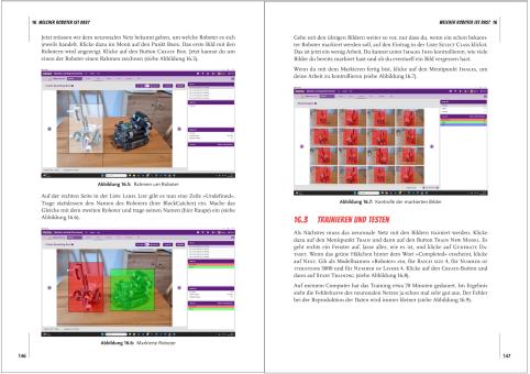 Künstliche Intelligenz kann Aufgaben lösen, die man früher nur Menschen zugetraut hat: einen Hund von einer Katze unterscheiden, die Ampelschaltung einer Kreuzung optimieren und vieles mehr. In diesem Buch lernst du, wie du solche KI-Anwendungen selbst entwickelst – ganz einfach mit Scratch, Python und der kostenlosen Software PictoBlox.